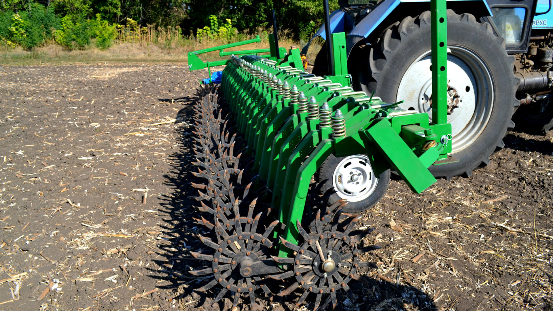Борона имеет навесной способ агрегатирования и используется с тракторами класса 1,4 (80 л.с.)